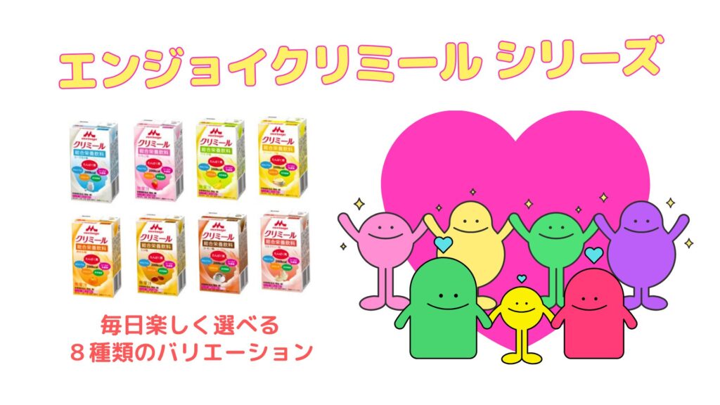 エンジョイクリミールは、毎日の健康を美味しくサポートしてくれる栄養補助飲料です。選べる楽しさがある8種類のバリエーションがあります。